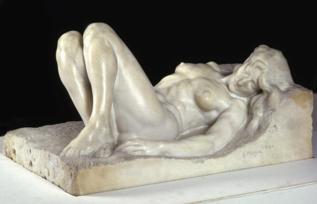 La figura sensuale che si risveglia sembra prendere lentamente vita, liberandosi dal marmo. Il michelangiolismo di Auguste Rodin, scultore affermatissimo in Europa, ebbe un seguito enorme in Italia e Giovanni Mayer (autore delle sculture per il rinnovato palazzo della Riunione Adriatica di Sicurtà, oggi hotel Hilton) conferma con evidenza questo influsso. Il corpo della donna sembra prendere vita dal desiderio dell’artista: una Venere seduttiva che emergendo dal marmo libera il piacere di soggiogare.